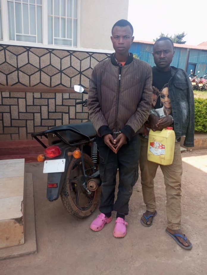 Mu Murenge wa Ndera mu Kagali ka Bwiza hafatiwe Litiro 5 za kanyanga n’abagabo 2 bari bayitwaye kuri moto.